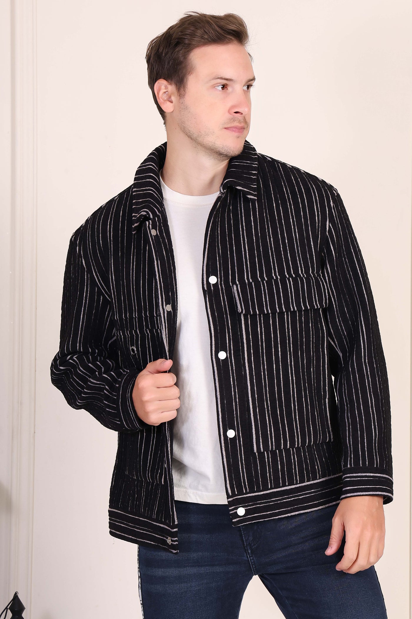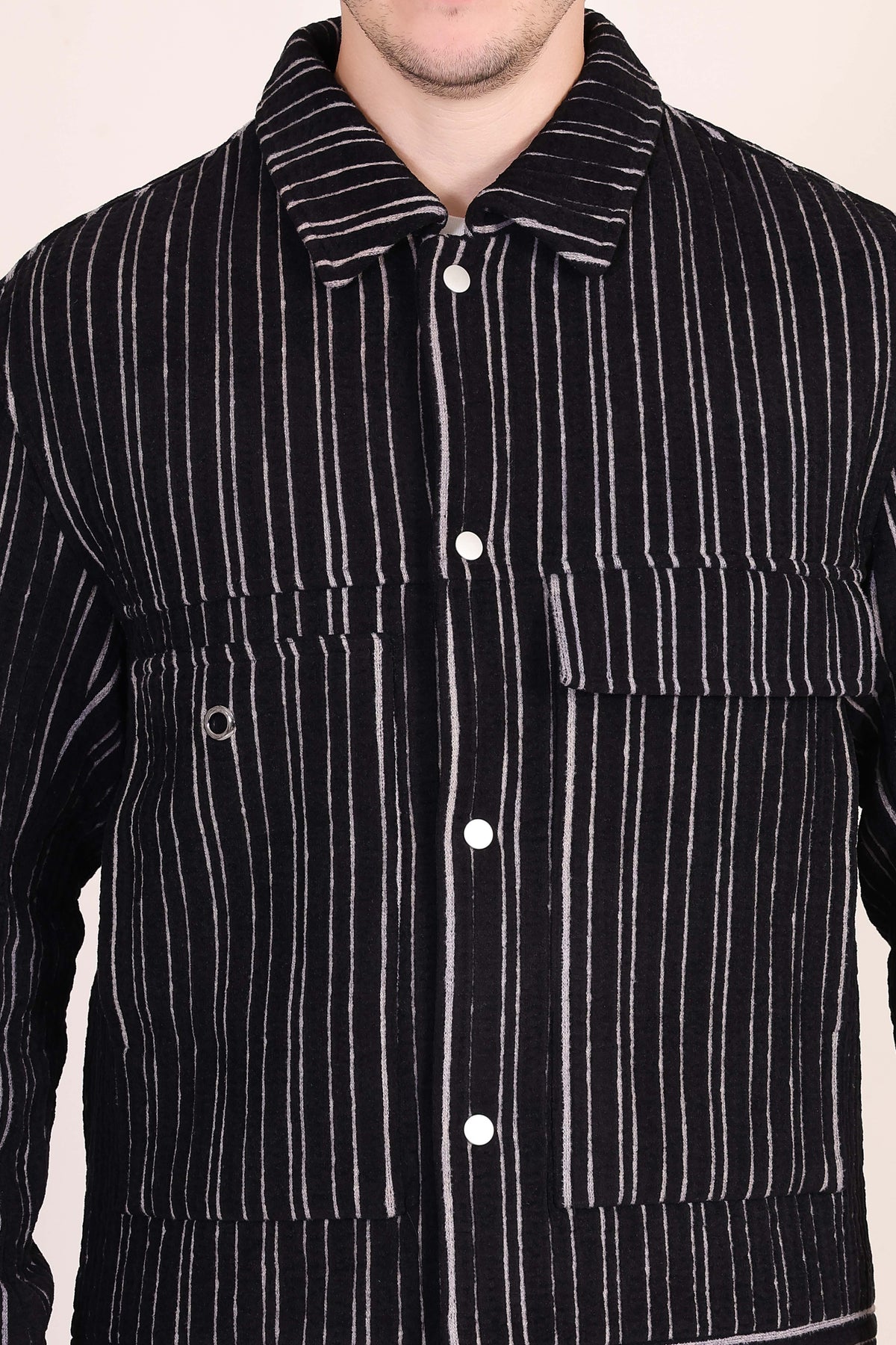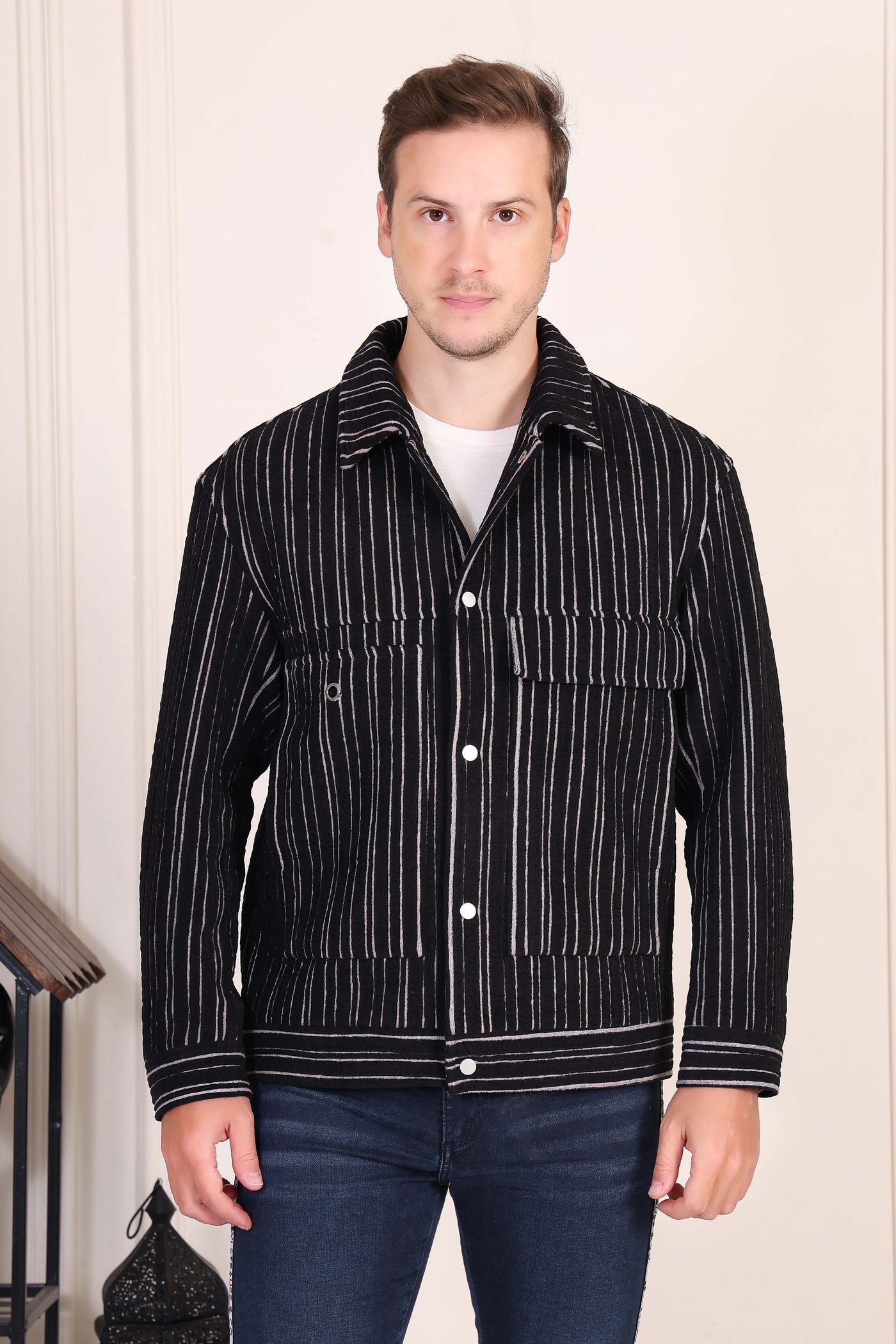 Crafted from a durable, lightweight fabric, the jacket features a snap-button front, utility pockets, and a sharp collared design that keeps your fit structured and premium. The BLACKSTEP chest branding adds a bold yet refined signature touch.